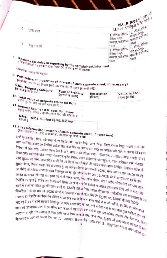 8 जनवरी, शाम लगभग 6 बजे। सुशांत गौतम अपनी टीम के साथ मैकल पर्वत श्रृंखला में हो रहे अवैध उत्खनन की तस्वीरें और वीडियो रिकॉर्ड कर लौट रहे थे। तभी धनौली क्षेत्र में माफिया ने फिल्मी अंदाज़ में घेराबंदी कर दी—
