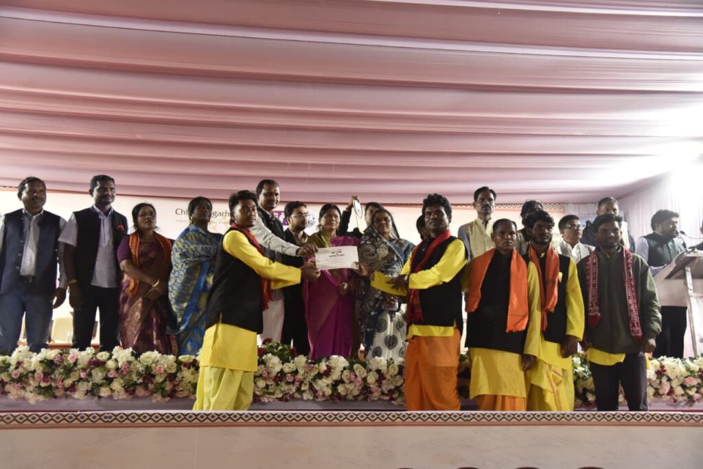 जनजाति आभूषण प्रतियोगिता में दरभा के तेजेन्द्र कुमार कश्यप ने प्रथम, बकावंड की चंचला भारती ने द्वितीय और बस्तानार की सीमा मरकाम ने तृतीय स्थान प्राप्त किया।
