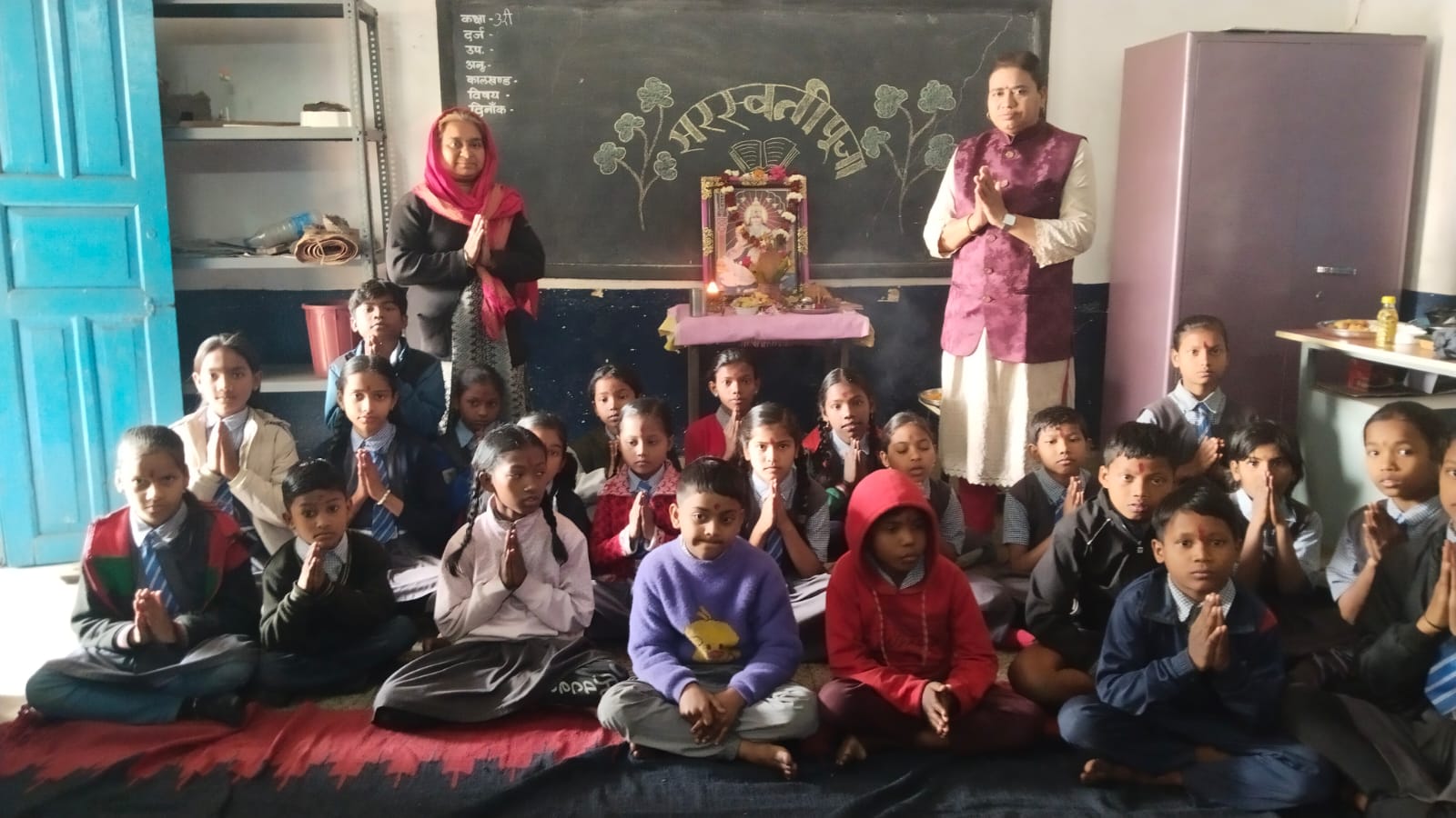 मां सरस्वती की आराधना से भक्तिमय हुआ विद्यालय परिसर