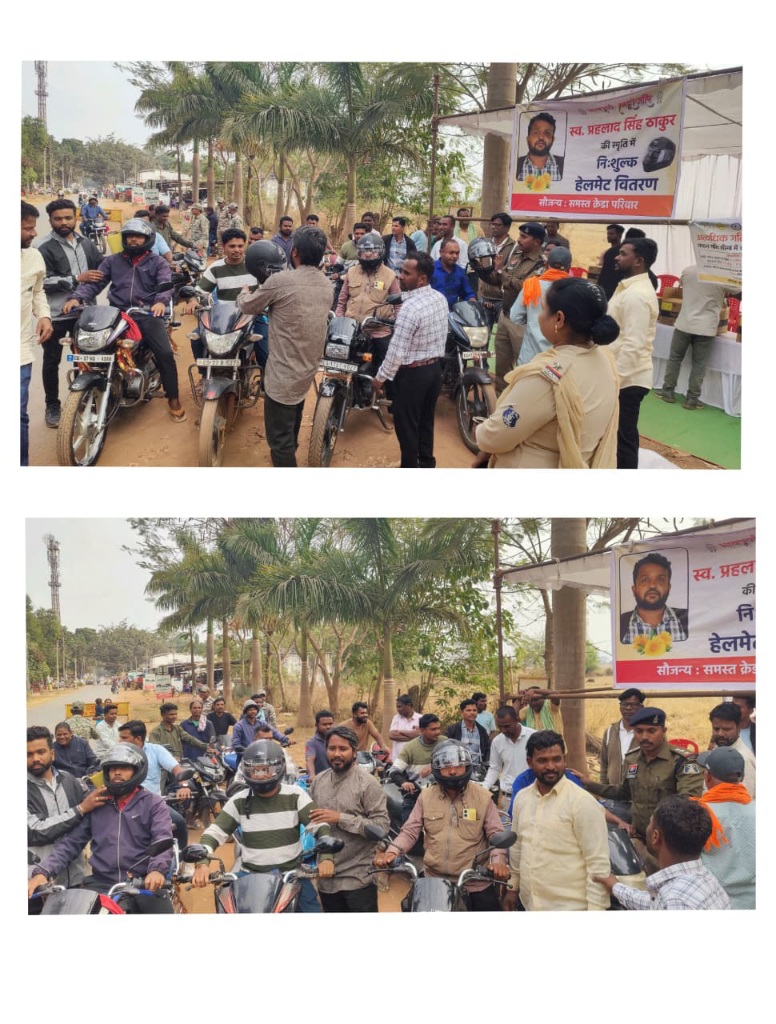 लोहंडीगुड़ा। विकास खंड लोहंडीगुड़ा में छत्तीसगढ़ क्रेडा तकनीशियन सहकर्मियों ने स्वर्गीय प्रहलाद सिंह ठाकुर की स्मृति में नि:शुल्क हेलमेट वितरण कार्यक्रम आयोजित किया, प्रहलाद सिंह ठाकुर का 02 जनवरी 2026 को सड़क हादसे में मृत्यु हो गई थी। इस अवसर पर लोहंडीगुड़ा थाना प्रभारी व छत्तीसगढ़ क्रेडा तकनीशियन सहकर्मी उपस्थित थे।
