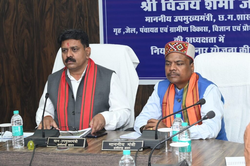 रायपुर, 22 जनवरी 2026/ उप मुख्यमंत्री श्री विजय शर्मा एवं वन एवं जलवायु परिवर्तन मंत्री श्री केदार कश्यप द्वारा गुरुवार को नारायणपुर जिला पंचायत के सभा कक्ष में जनप्रतिनिधियों एवं जिला स्तरीय अधिकारियों की बैठक लेकर जिले में संचालित नियद नेल्लनार योजनांतर्गत किए जा रहे विकास कार्यों की समीक्षा की।