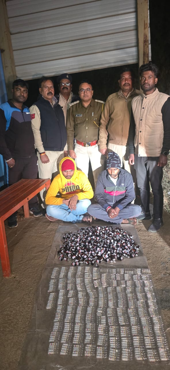 सहायक जिला आबकारी अधिकारी रंजीत गुप्ता ने बताया कि हमारी टीम कल दिनांक 30.1.2026 को सायं कालीन गस्त पर बतौली जा रही थी तभी बेलकोटा बस स्टॉप पर दो व्यक्तियों को दो बोरियों के साथ संदिग्ध अवस्था में देखा गया, गाड़ी रोकने पर दोनों हड़बड़ाये उनसे पूछने पर एक व्यक्ति ने अपना नाम अनूप गुप्ता निवासी गोदरमाना जिला गढ़वा झारखंड का होना बताया तथा दूसरे व्यक्ति ने अपना नाम विनय गुप्ता निवासी पाटोली जिला सरगुजा का होना बताया दोनों व्यक्तियों के पास रखें बोरे की तलाशी लेने पर एक बोरी में 600 नग REXOGESIC INJECTION तथा दूसरी बोरी में 600 नग AVIL INJECTION  बरामद कर जप्त किया गया। जिसका बाजार मूल्य ₹600000 है।। दोनों आरोपियों को एनडीपीएस एक्ट की धारा 22 सी के तहत गिरफ्तार कर आज माननीय विशेष न्यायालय अंबिकापुर पर रिमांड लेकर जेल दाखिल खेल किया गया।।