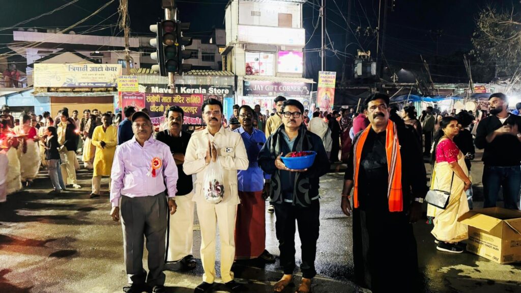 जगदलपुर। वृंदावन कॉलोनी स्थित अय्यप्पा मंदिर में आयोजित 39वें वार्षिक महोत्सव के अंतर्गत सोमवार को भगवान अय्यप्पा स्वामी की भव्य शोभायात्रा निकाली गई। यह शोभायात्रा महादेव घाट से प्रारंभ होकर शहर के प्रमुख मार्गों से गुजरते हुए संपन्न हुई।