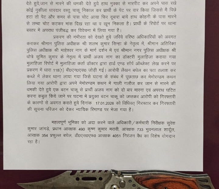 नशे के सौदागरों पर बस्तर पुलिस की बड़ी कार्रवाई, भारी मात्रा में प्रतिबंधित नशीली कैप्सूल जब्तJanuary 17, 2026छत्तीसगढ़