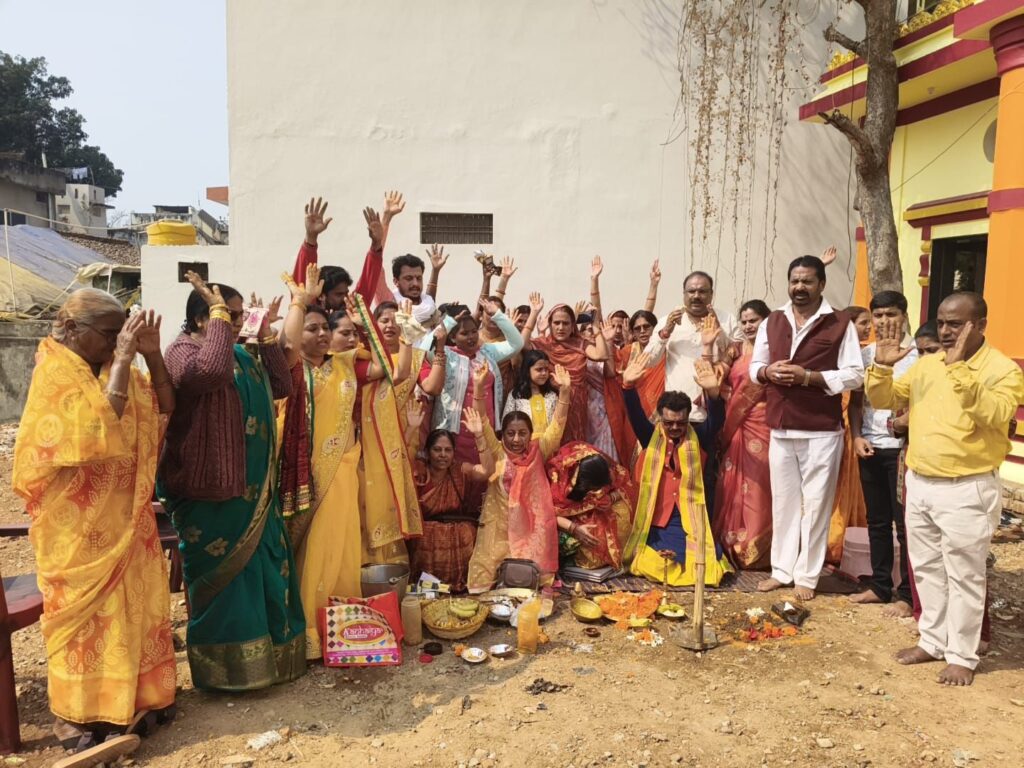 मंदिर प्रतिष्ठा हेतु यज्ञ शाला निर्माणार्थ भूमिपूजन में संजय पाण्डे, आचार्य श्री रामराज त्रिपाठी , राजेश महावर, रंगा आचार्य, सुकुमार धर, अभय राय, अर्जुन मिश्रा, श्रीमती शांति महावर, श्रीमती रेखा पाण्डेय, श्रीमती सुब्रा दास, श्रीमती किरण सोनी, श्रीमती रजनी पाठक, श्रीमती आभ्या शुक्ला, श्रीमती मंजु शुक्ला, श्रीमती अरुणा आचार्य, श्रीमती संध्या महावर, श्रीमती रंजना पाण्डे सहित वार्डवासी अधिक संख्या में मौजूद रहे।