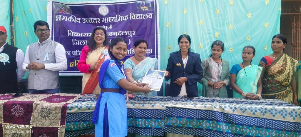 गणतंत्र दिवस पर प्रभात फेरी के पश्चात् ध्वजारोहण आमंत्रित अतिथि द्वारा किया गया। ध्वजारोहण के पश्चात् विद्यार्थियों द्वारा बहुत ही खूबसूरत सांस्कृतिक प्रस्तुतियां दी गई।जिसमें भाषण,देशभक्ति एवं बस्तर सहित अलग अलग प्रदेशों के नृत्यों का सुंदर वेशभूषा के साथ प्रदर्शन किया गया। मुख्य अतिथि कु हेमेश्वरी नाग , अध्यक्षता श्री तुलसीराम देवांगन SMDC अध्यक्ष ने की, विशेष अतिथि सरपंच श्रीमती गायत्री नाग, उपसरपंच एवं समस्त पंच उपस्थित थे ।