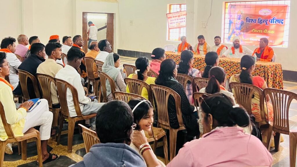 जगदलपुर । विश्व हिंदू परिषद बजरंग दल की महासमुंद जिले में प्रांत बैठक संपन्न पश्चात विहिप प्रांत सह मंत्री रवि ब्रह्मचारी की अध्यक्षता में आयोजित जिला स्तरीय बैठक बस्तर में सम्पन्न हुई, जिसमें प्रान्त पदाधिकारीयों की उपस्थिति में संगठन के कार्यकर्त्ताओं को सम्बोधित किया गया। बैठक में धर्मान्तरण, गौ तस्करी और राम नवमी की तैयारी जैसे मुद्दों पर चर्चा की गई।