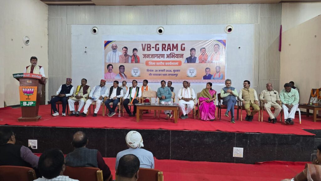 जगदलपुर। भारतीय जनता पार्टी द्वारा आज बुधवार को स्थानीय वीर सावरकर भवन में विकसित भारत जी-राम-जी जनजागरण अभियान को लेकर जिला स्तरीय कार्यशाला आयोजन किया गया। जिसमें भाजपा प्रदेश अध्यक्ष व विधायक किरण सिंह देव, भाजपा बस्तर संभाग प्रभारी व वीबो जी-राम-जी जनजागरण अभियान के प्रदेश संयोजक यशवंत जैन एवं भाजपा प्रदेश उपाध्यक्ष व भाजपा बस्तर जिला प्रभारी सतीश लाटिया विशेष रूप से उपस्थित थे।