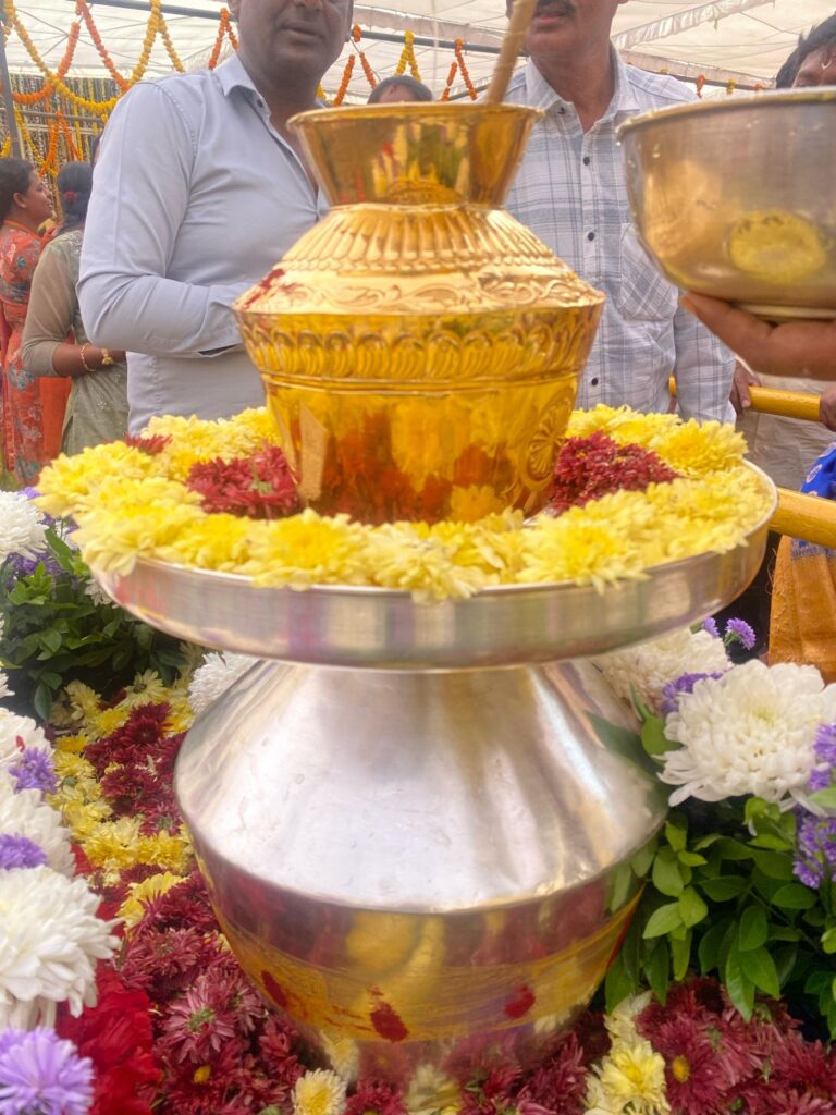 इस दौरान भक्तों के हाथों से समर्पित शहद स्वर्ण कलश में पंडितों के सानिध्य में संग्रहित किया गया। इसी शहद से गुरूवार सुबह श्री बालाजी मंदिर में भगवान बालाजी, माता आंडाल एवं माता पद्मावती का महाअभिषेक किया जाएगा। इस पावन अवसर पर हज़ारों की संख्या में नगर के श्रद्घालु जुटेंगे।